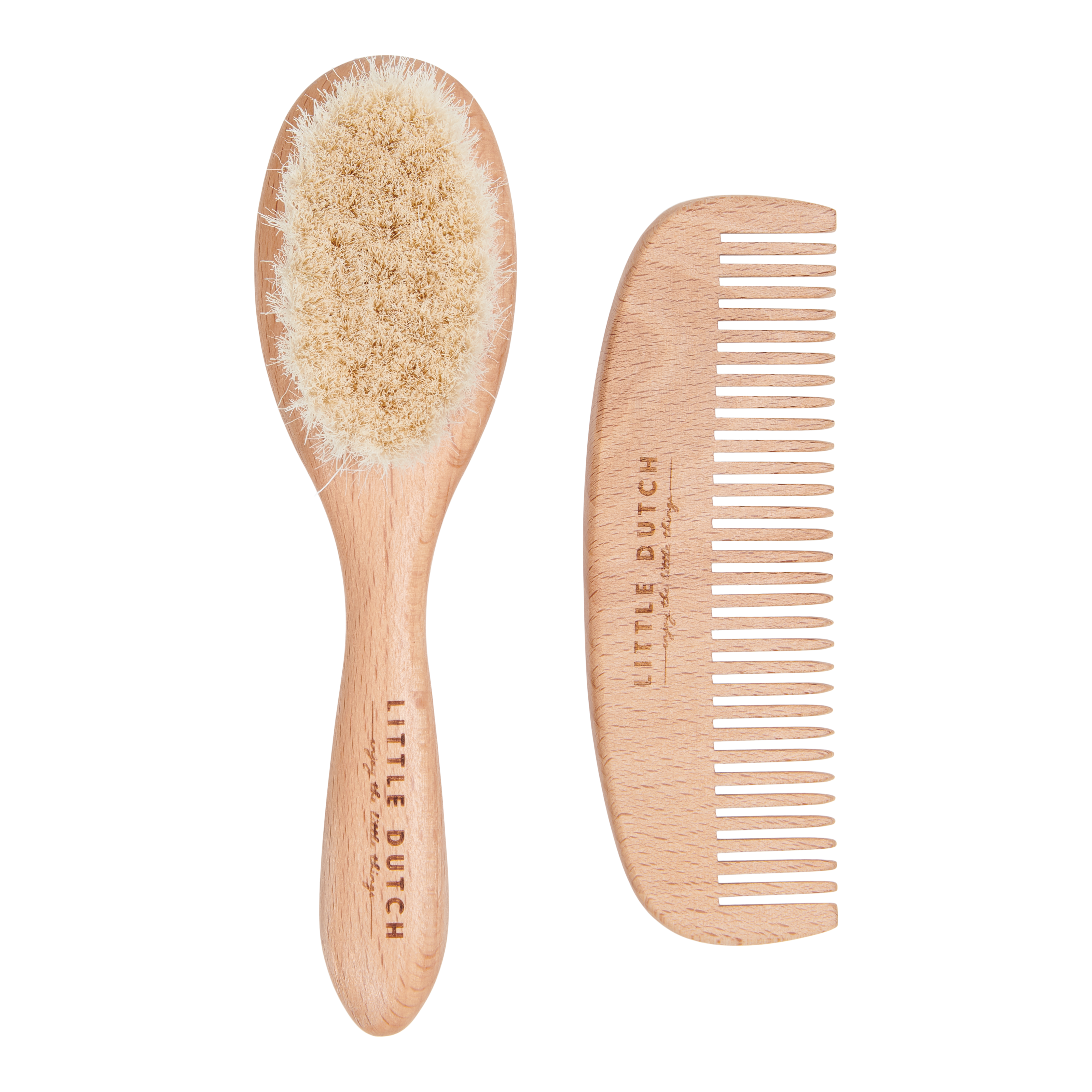 The wooden hairbrush with soft bristles is especially designed for a baby’s delicate scalp. It will help you style those cute little locks of hair. And your little one will love the gentle strokes. The comb has wide teeth to smoothly detangle and style your baby’s look. Fresh and ready for another day of playing and exploring.