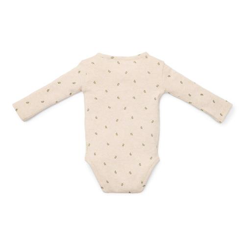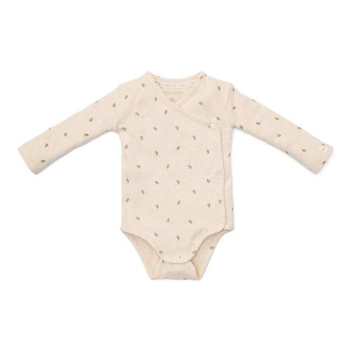 Wrapped in comfort! This bodysuit with a crossover snap button closure is the perfect essential for your newborn’s first adventures. It features a charming sand colour and a soft print of tiny leaves for a natural look. Crafted from soft organic cotton and with practical snap buttons at the crotch, this bodysuit provides a snug fit for comfort and warmth, ideal for everyday wear. The wrap-style design ensures effortless dressing and undressing, making it convenient for both you and your baby.
