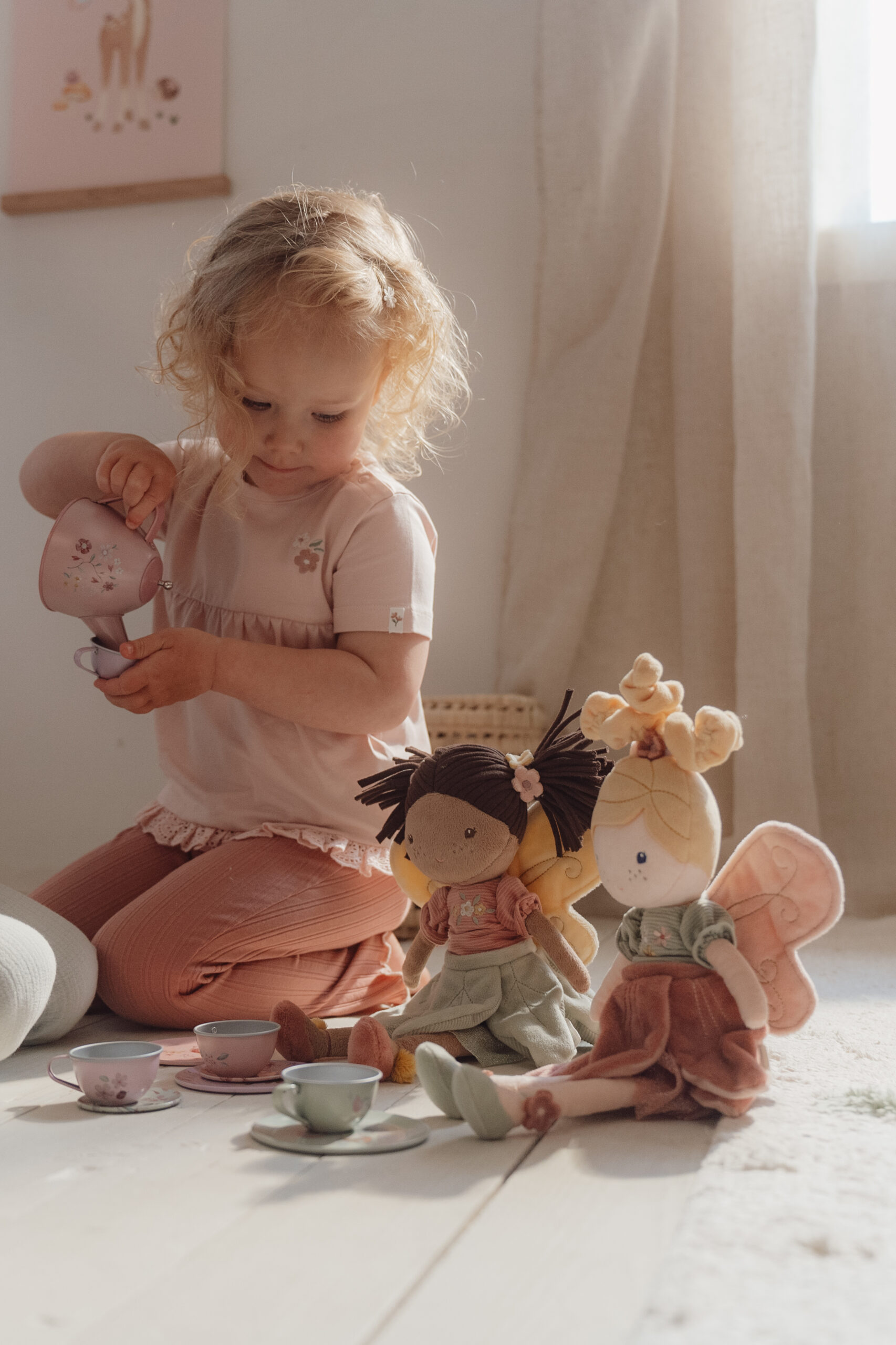 Meet Fairy Mila, a soft plush fairy with wings from the Fairy Garden collection. She takes you on an adventure in the flower garden, among colourful flowers and bees. Fairy Mila is cuddly and perfect for little hands. Her sweet face and detailed outfit make her a nice playmate and a beautiful decoration for the nursery. Let your child enjoy the adventures with Fairy Mila!
